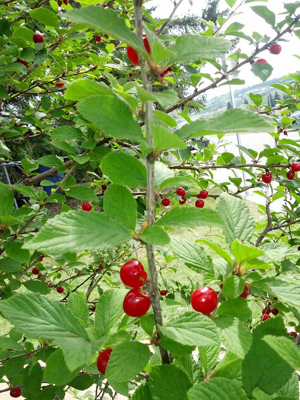 It’s Cherry Season! Soon those cherries will be falling off the bushes so you’d better grab them now. It’s easy to get lots of lovely ripe cherries off a bush – this batch took me about 15 minutes. There are two methods to quick and easy cherry picking: